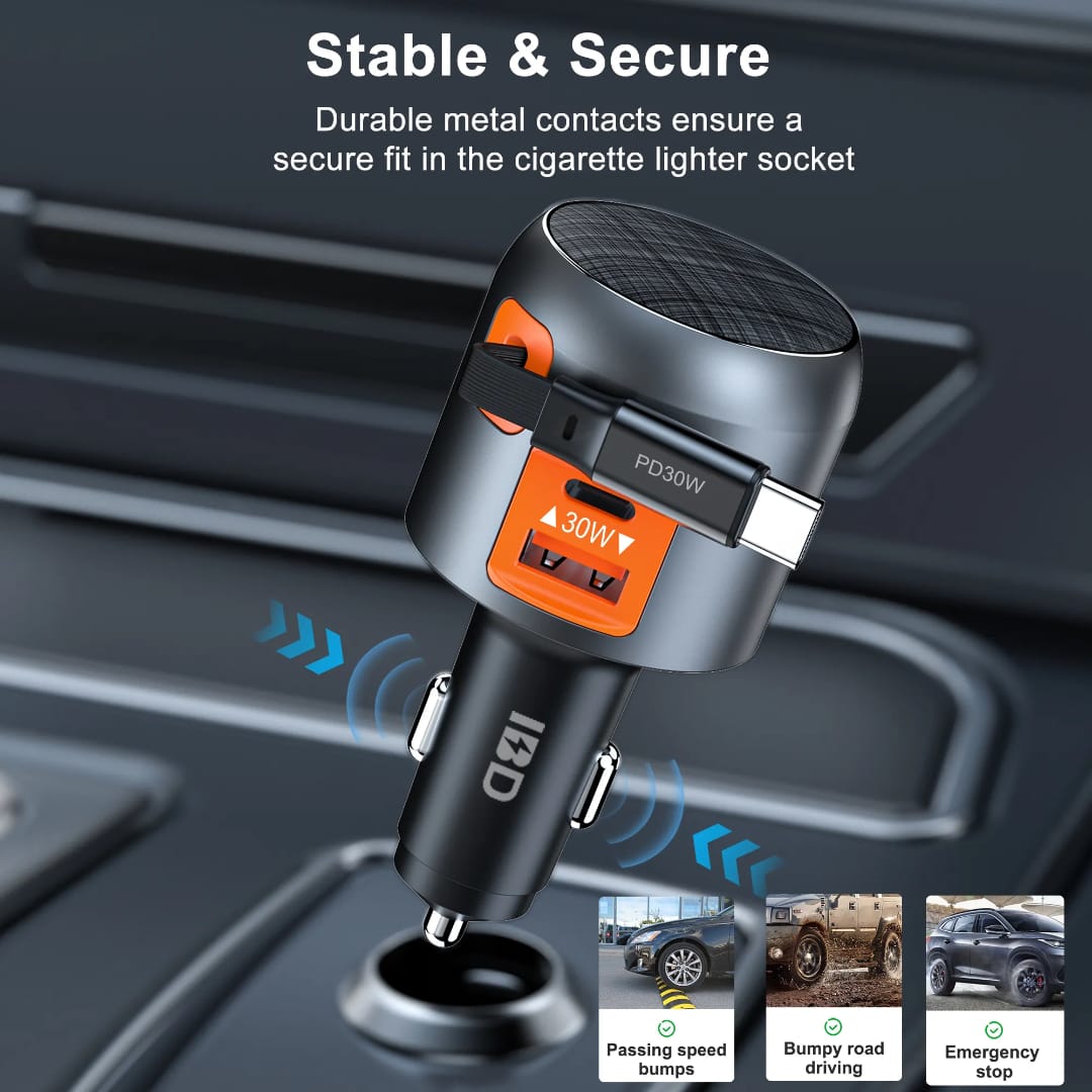 Baseus 60W Car Charger Dual Retractable Cable Type-C USB QC PD PPS Fast Charging Car Phone Charger For iPhone Samsung Xiaomi